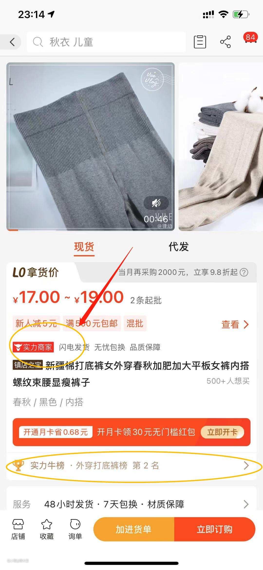 实力商家的标识,说明得到了平台的认证和认可,要么销量大,要么底子厚,也就是我们理解中的“大店”。