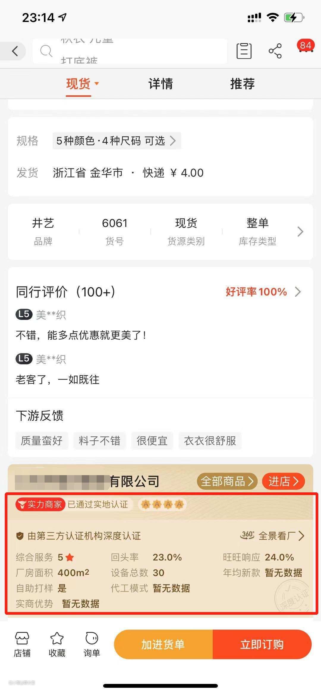 如果担心还不够靠谱?还可以看深度验商/厂。深度验商可以看到1688委托第三方做的检测报告。甚至360°VR全景看厂,办公场所、仓库和工厂都可以看到。