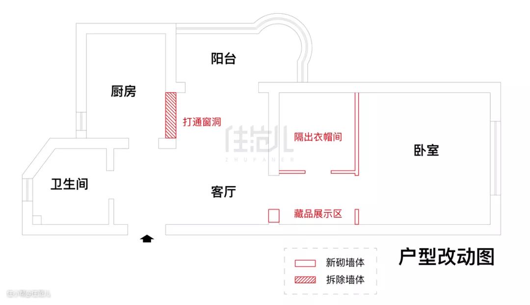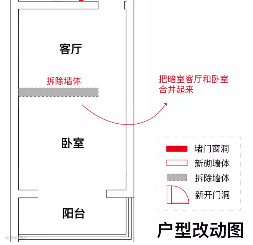 就像这个手枪户型,本身没有客厅,而主卧带阳台面积相对宽敞,砌墙隔出来一部分做客厅刚刚好。