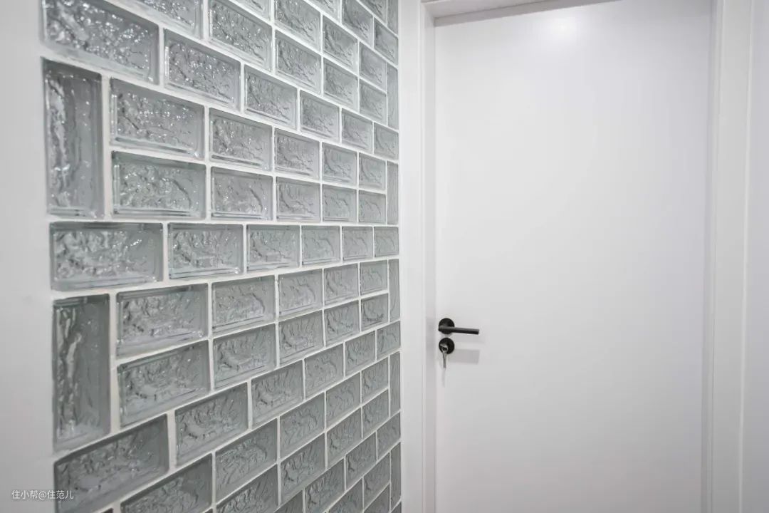 下面这个案例就是使用了一整面的玻璃砖,透光度也更好,让小空间内的光线看着更亮堂。即使从外面走道朝内看,也不会太透。