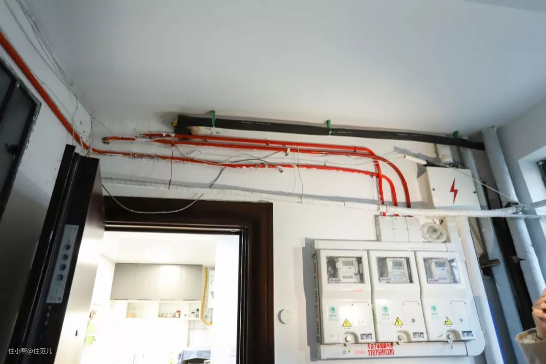 一层楼的入户电线竟然都埋在一家墙里面,从外面完全看不出来。正常施工时很容易把另外两户的电线都凿断。