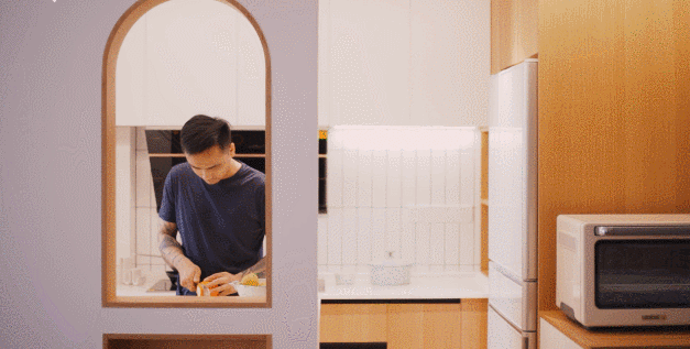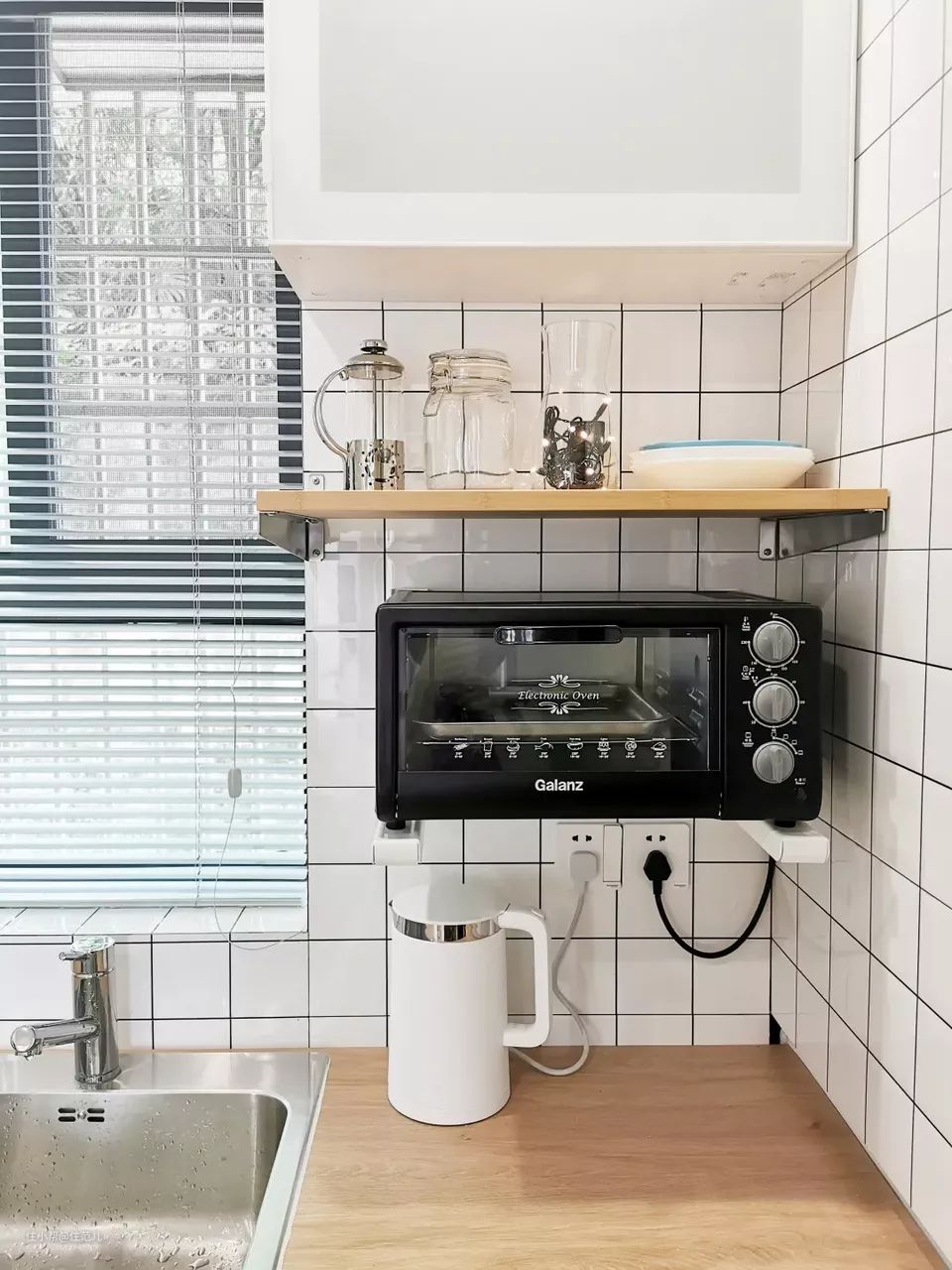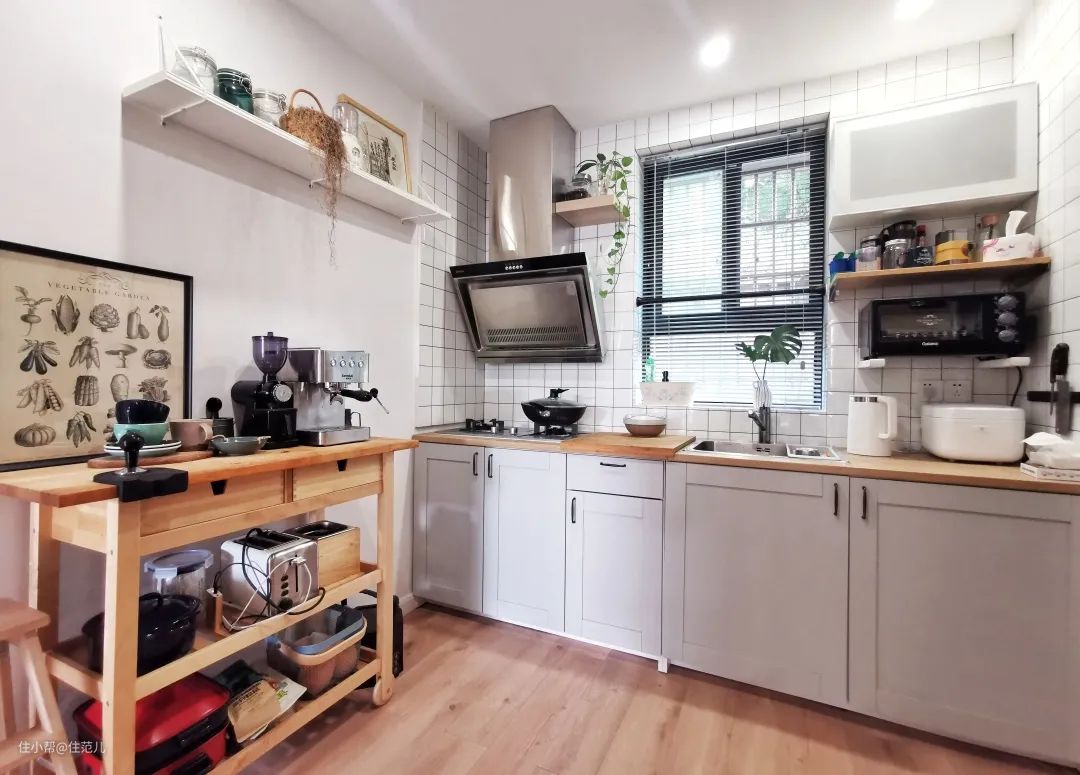 厨房联通阳台的老破小,还可以直接把阳台纳入厨房,作为烹饪区。