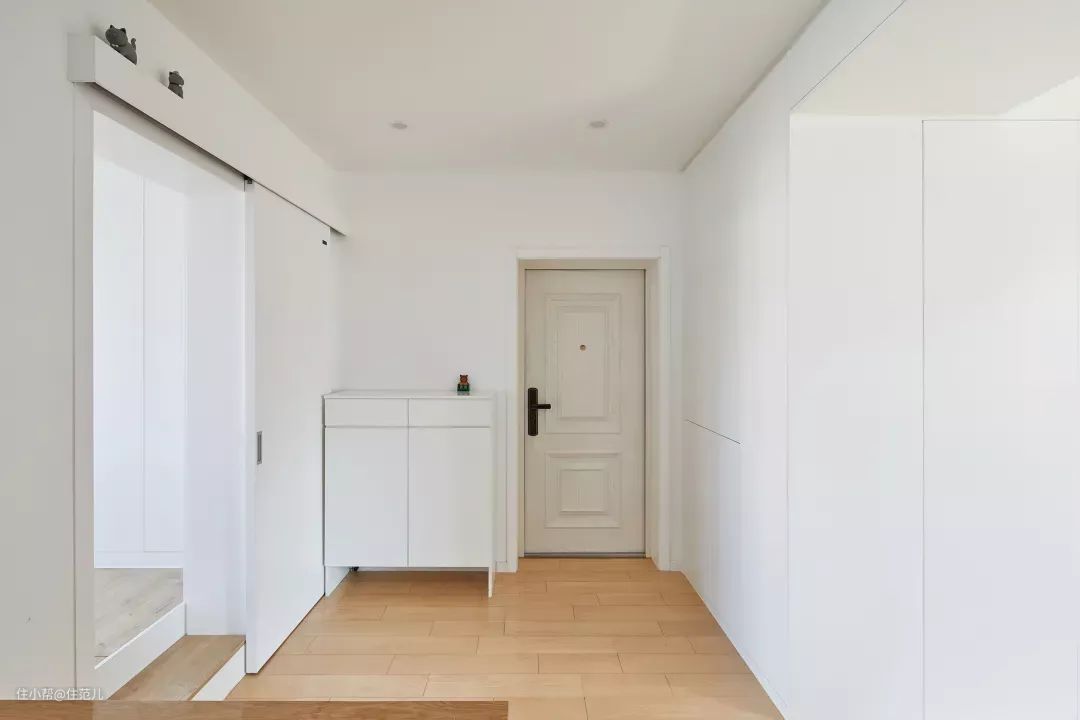 把卧室门稍稍移位了之后,空出放鞋柜的地方,正好把空间利用了起来。