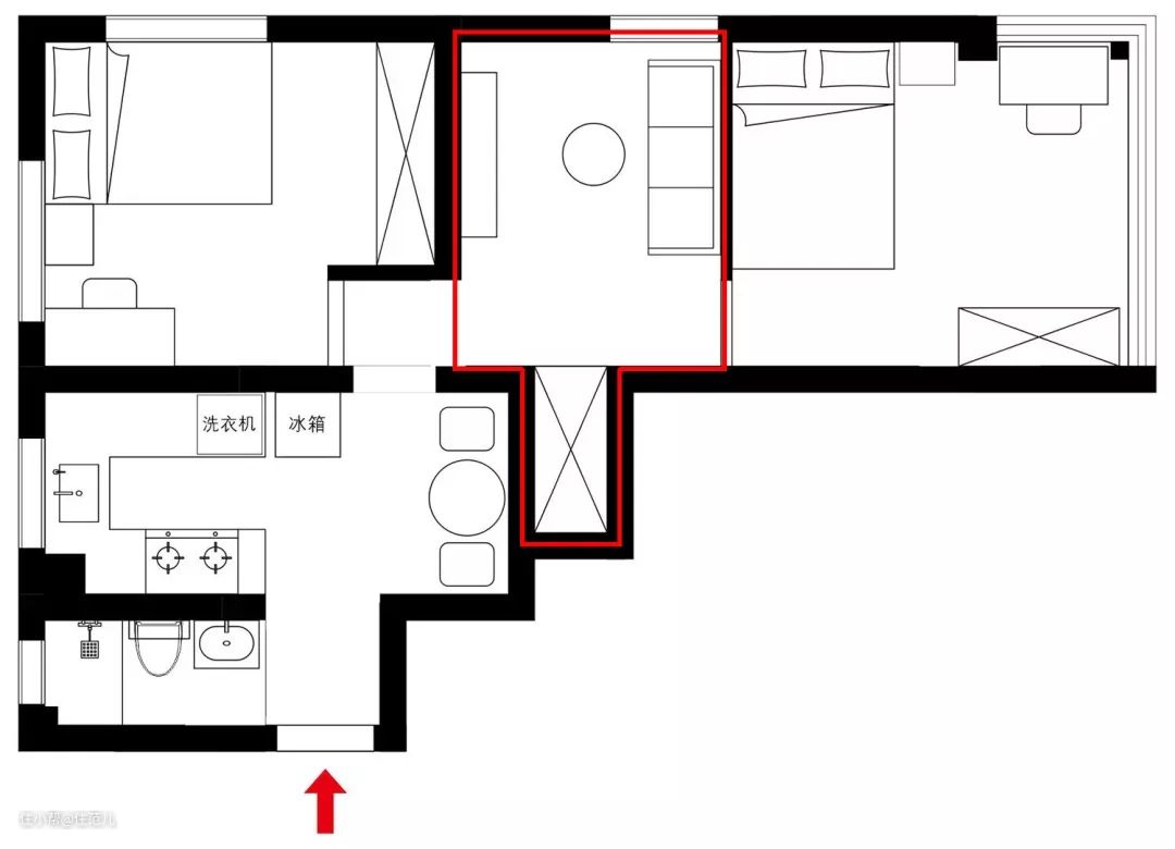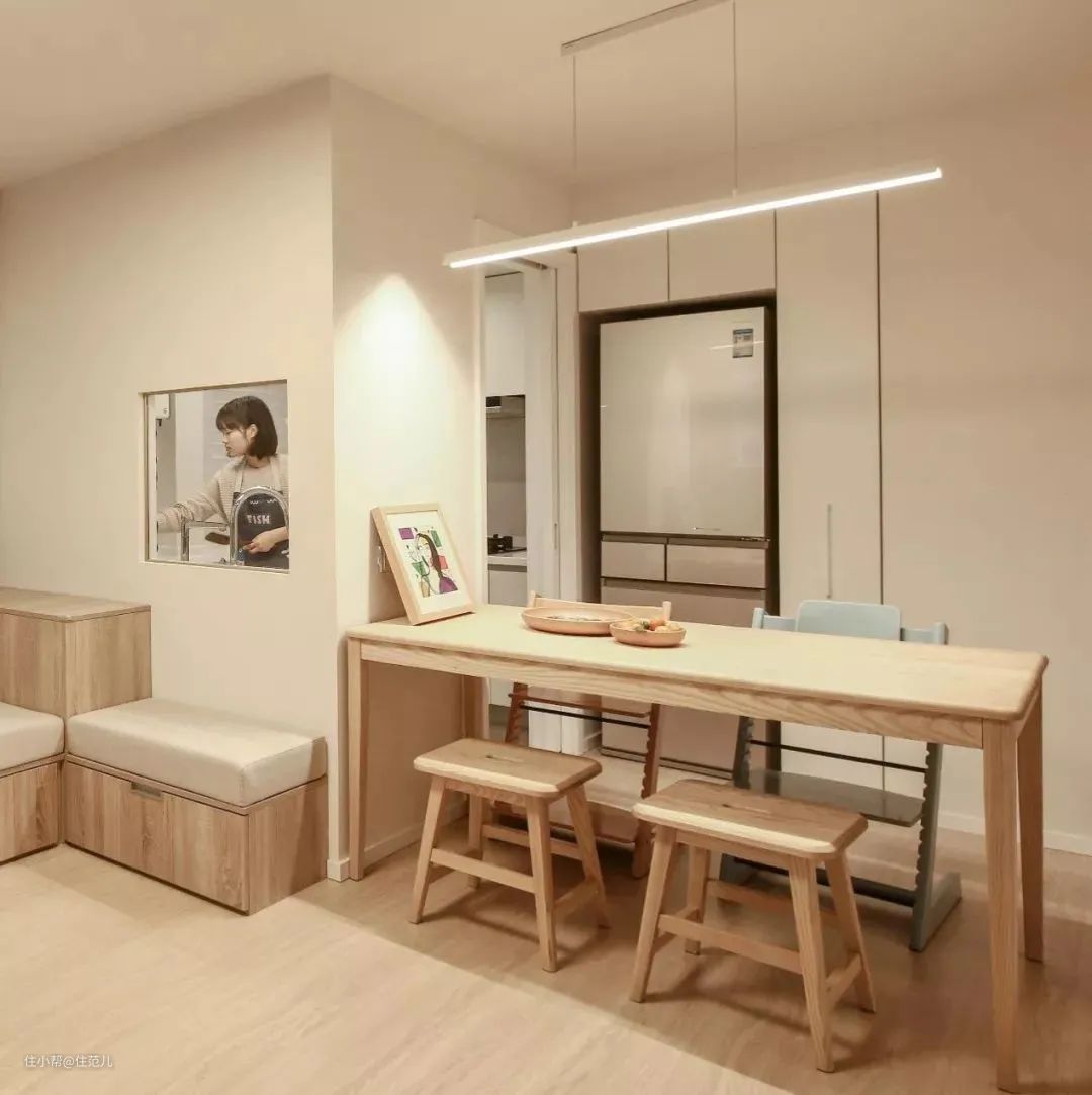 比如下面这个案例,打通起居空间,形成“玄关—厨房—客厅”的通透布局,采光得到了良好改善。室内窗设计戳这里拯救小户型的终极武器,被低估了20年