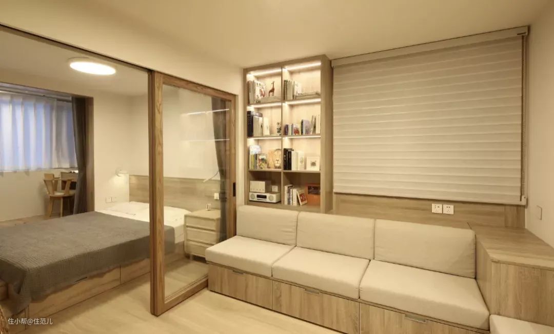 家里是大卧小厅或大卧没厅的情况,又想有个会客空间,就可以通过砌墙或者软隔断的方式,把大卧室分出来一部分给客厅。