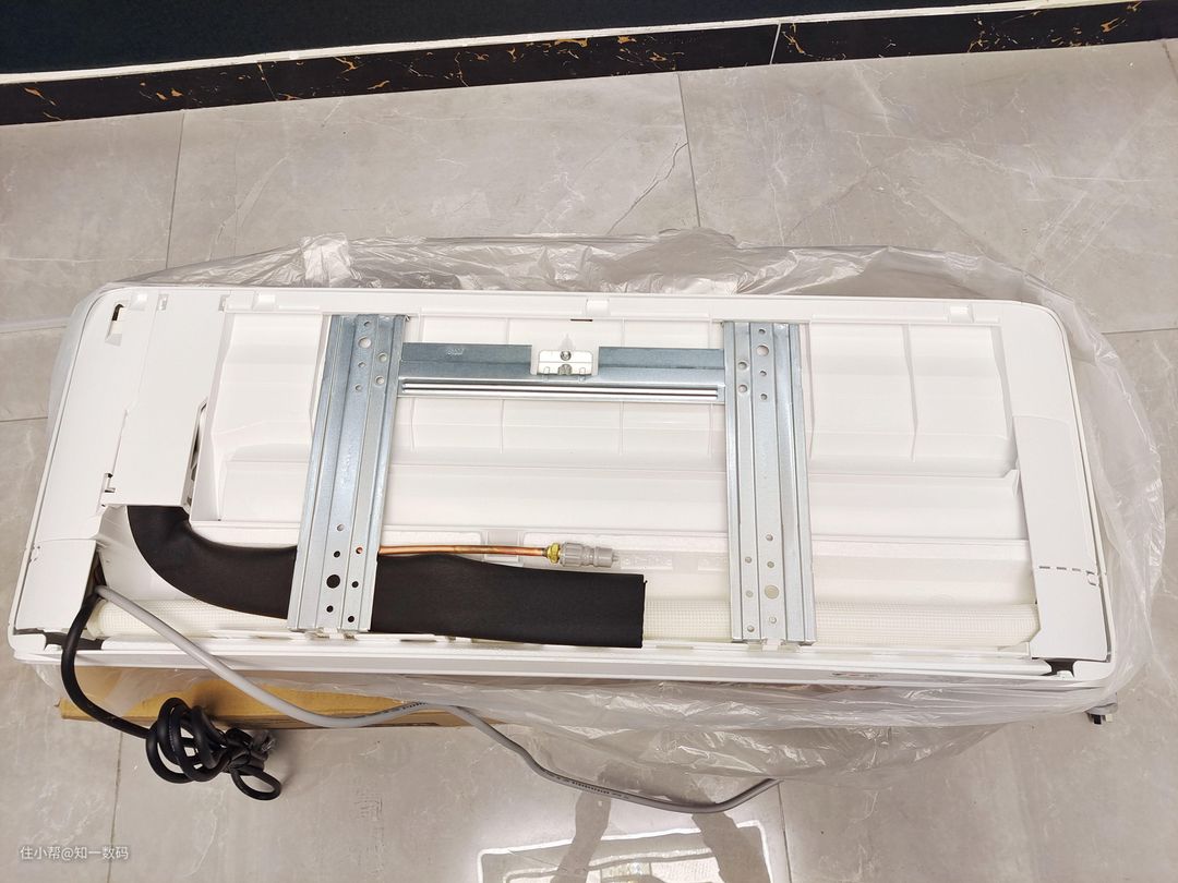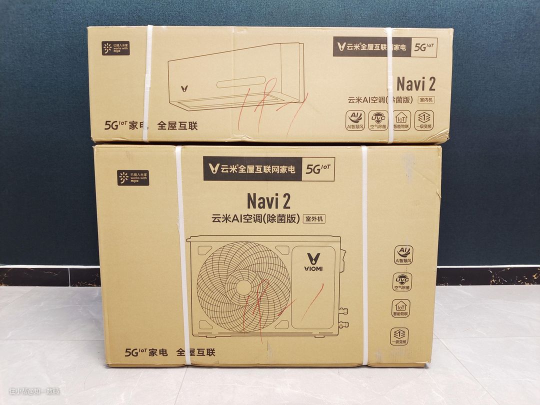 云米Navi 2 AI空调封装性较好,所以配件上略显少,这也方便了安装,开箱配件:室内主机、室外主机、排水软管、穿墙帽、PVC保护带、密封胶泥和排水嘴。