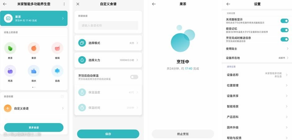 智能养生壶除了常规功能,支持小爱同学和接入米家。养生壶这类产品直接操作比较简单,不过配合米家APP中的模式选择可以更加方便地设定使用模式。操作不方便的时候,也可以通过语音让小爱同学来完成功能设定,当然有需要的话还能配合其他小米生态链产品进行智能联动。