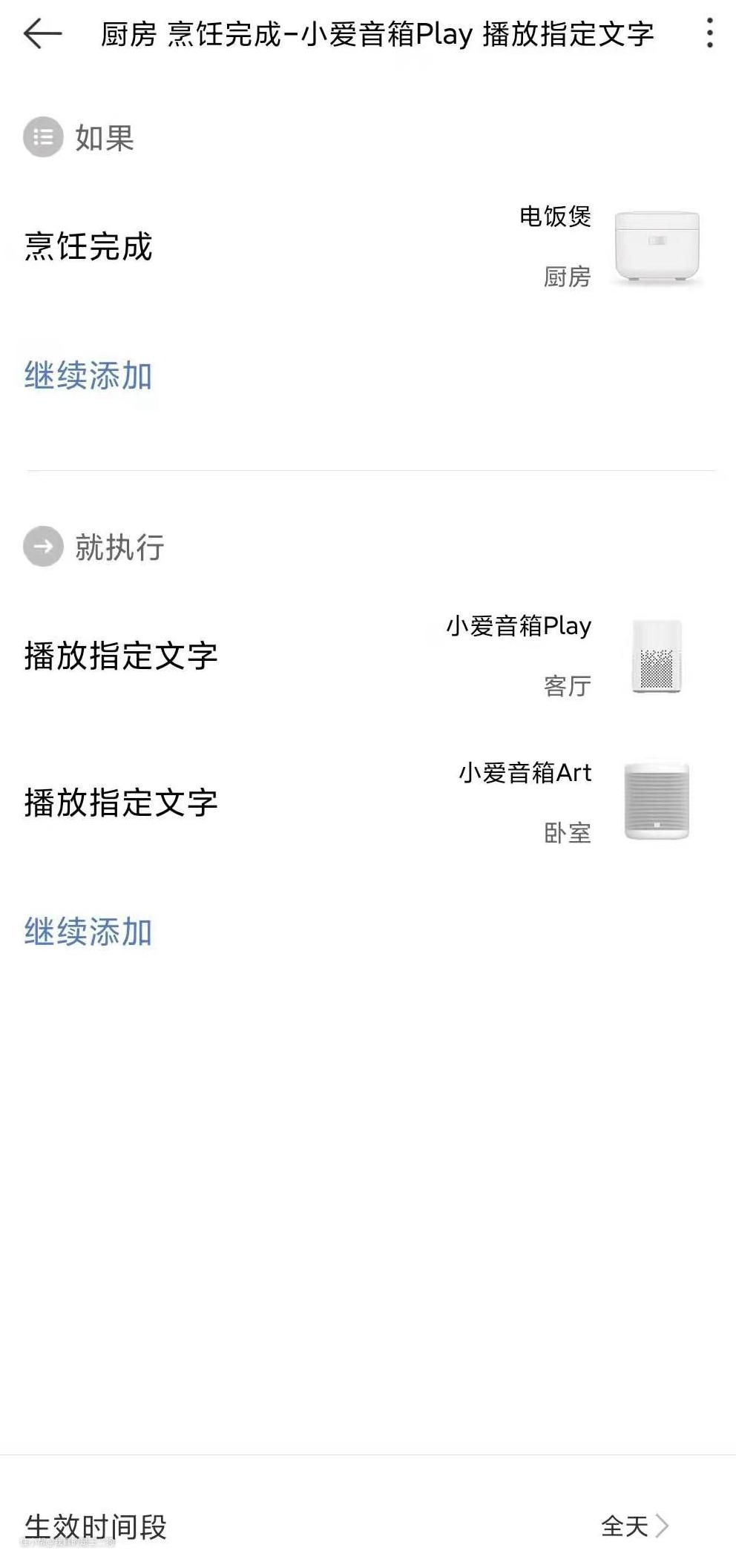 二狗在家做饭一般习惯提前备好做菜原料,米饭做好焖煮的时间用来做菜刚刚合适,一般来说中间都会有一个比较长的间歇期,玩玩手机看看电脑什么的挺好。设置一个智能联动,米饭做好后家里的小爱音箱自动提醒,收到语音后去炒菜时间控制刚刚好。