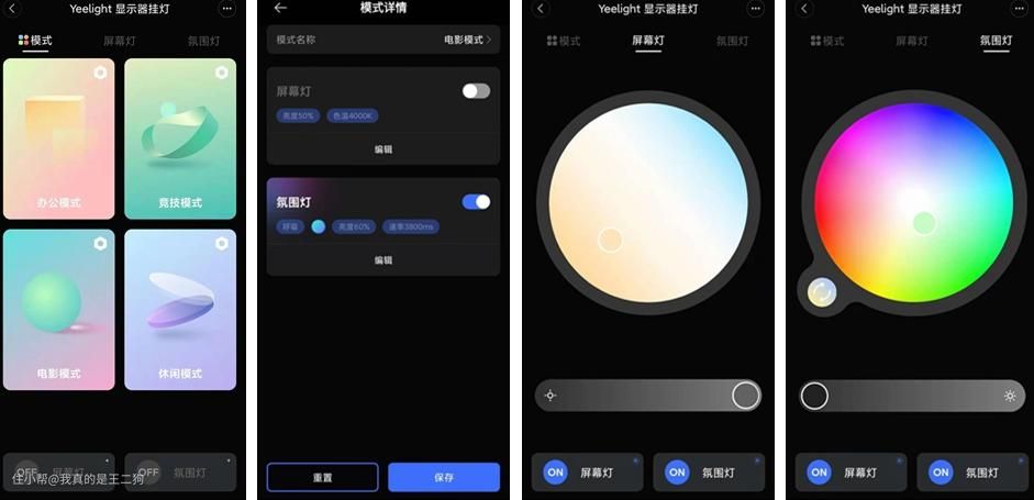 屏幕灯的丰富的可玩性配合旋钮开关可以方便的进行调整,模式、色温、亮度等操作都比较方便。屏幕灯的非对称光设计配合RA95的高显色性,工作和休闲都能提供舒适的光线体验。