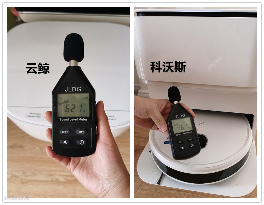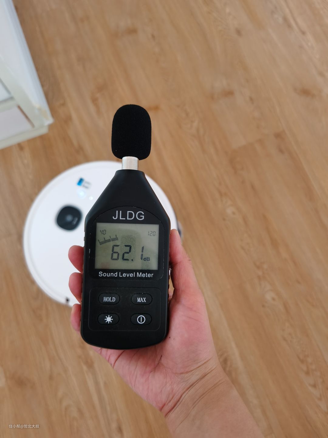 噪音这块我是扫拖地时候的声音和烘干抹布的声音来测的。正常咱们说话的声音在40-60分贝,超过70分贝的,就扰乱日常生活。