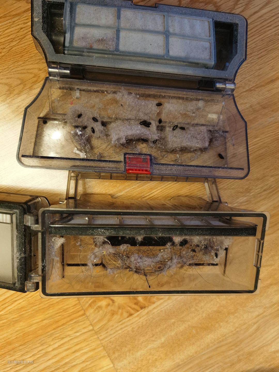 结果:扫拖一体机器人的尘盒普遍不大,跟纯扫地的机器人尘盒还是没法比的。常规打扫是可以的,但如果长时间才打扫一次的话,那尘盒就超负荷了。
