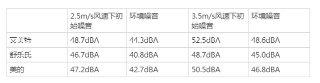 艾美特:初始风速6m/s,4.5米末端风速1.7m/s,初始噪音71.4dBA,末端噪音58.7dBA。