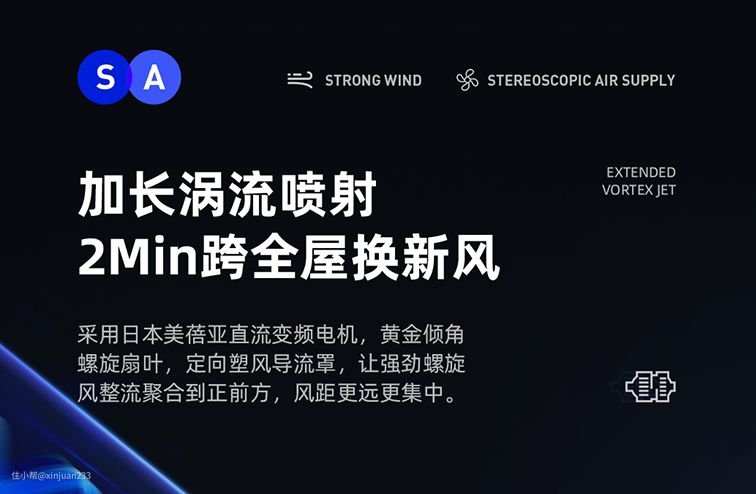 所谓空气循环扇,就我这么多年的使用体验来看,其实就是一种风道重新设计的改良产品。是一种为了解决特定问题,在原有产品(电扇)的基础上再次优化升级而产生的更有针对性的产品。它主要解决的是室内空气质量的问题,所采取的解决方案就是提高送风效率,重新规划风道,系统地提升整屋空气流动速度。
