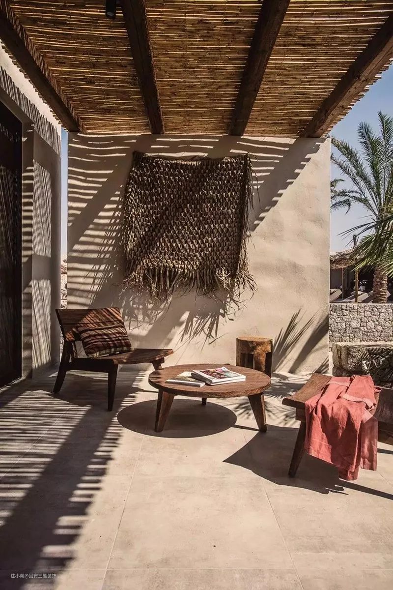 这是一处海边的建筑,它尽可能的保持了原始的自然建筑。现代和科技远离这里,而自然材质装饰了这里。不论是木质的房梁,覆盖的稻草,以及裸露的墙面,都给人一种自然的质朴感。没有华丽的装饰,但是却保持了家居的舒适性和通透。尤其在海边,这样舒适自然的居住环境,宛如世外桃源。