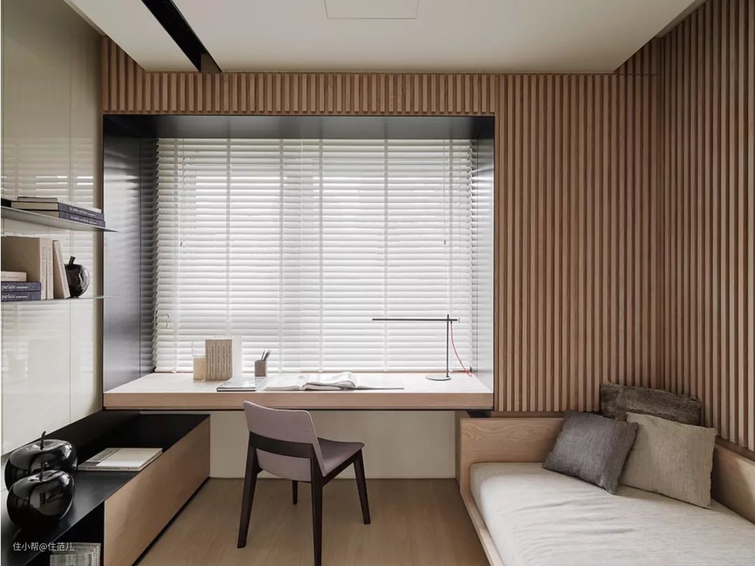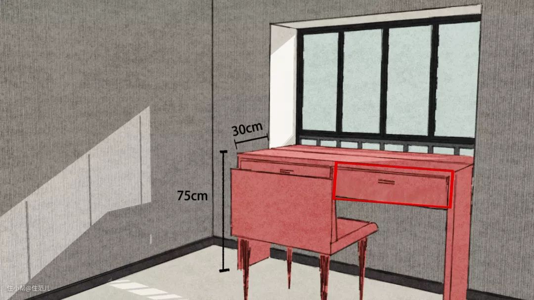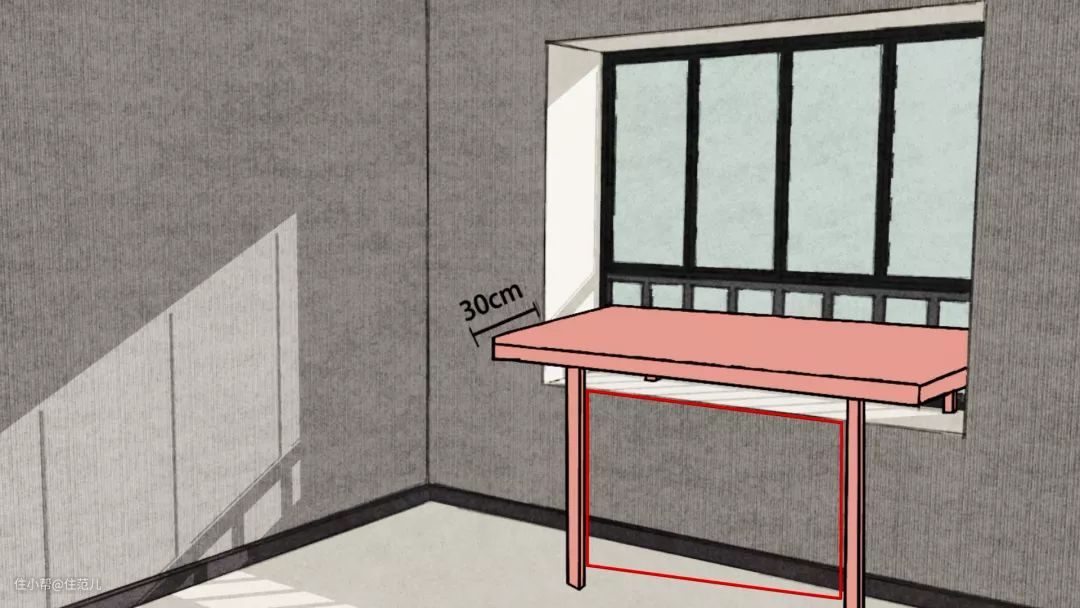 把飘窗的台面延伸作为桌面,预留腿部活动空间。
