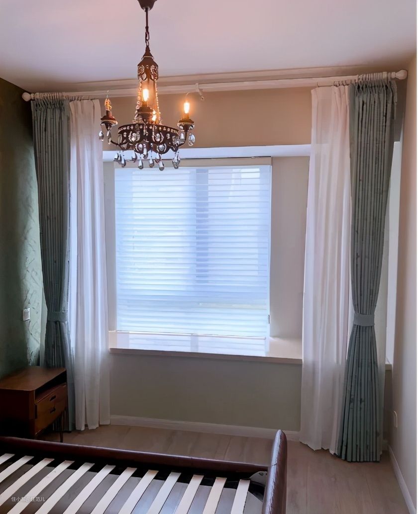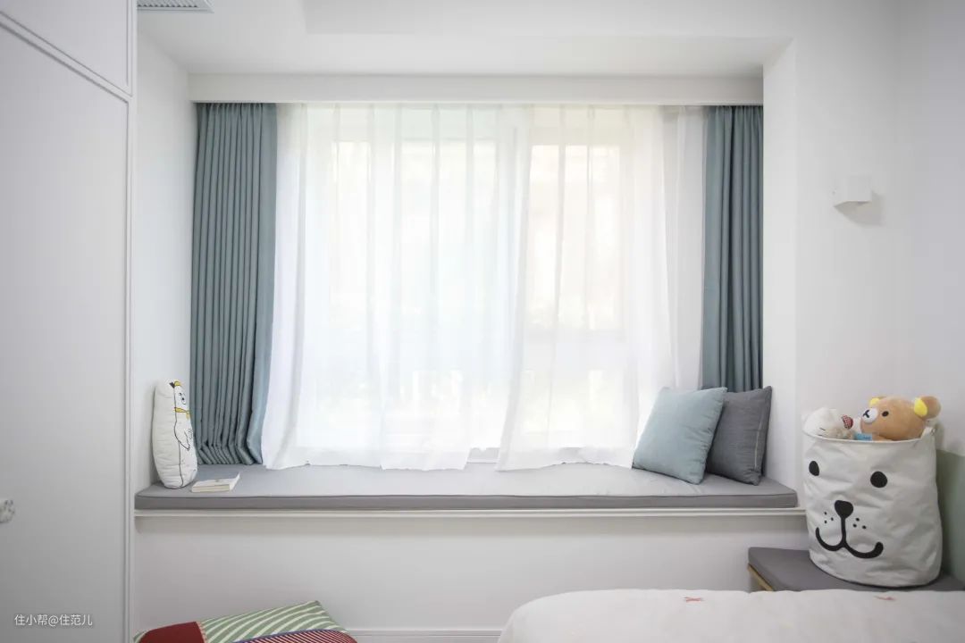 但外侧最好再做整面落地的窗帘,这样拉窗帘可以直接把飘窗隔在外面,显得更整洁,而且不会漏光,适合睡眠环境,隔热效果也会更好。