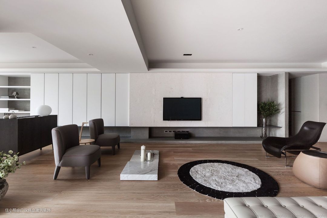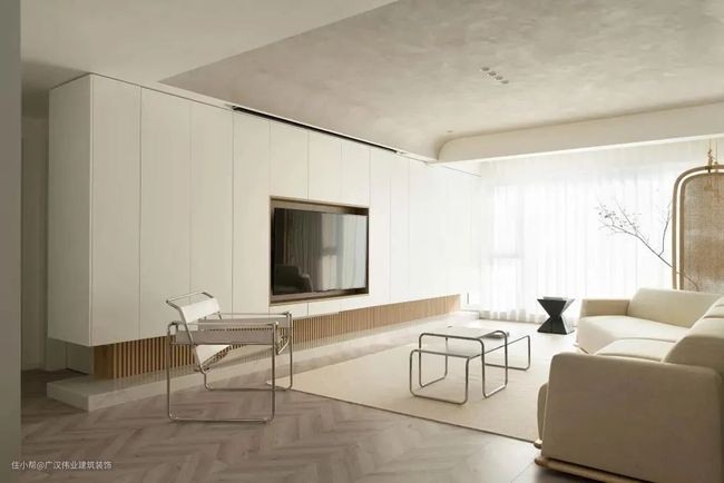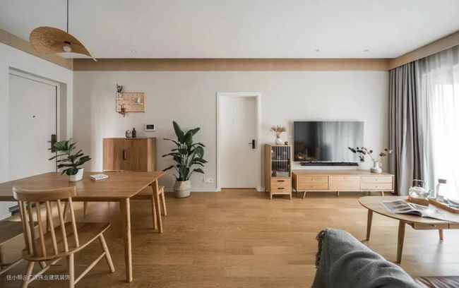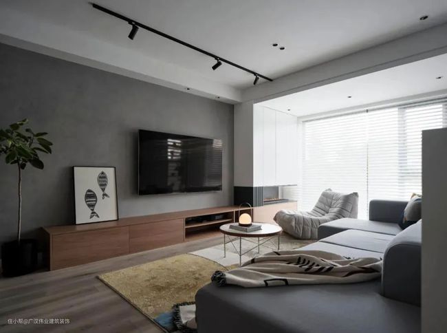 建议:大白墙避免过于简陋,可以搭配绿植+暖色系电视柜(如原木色等)。