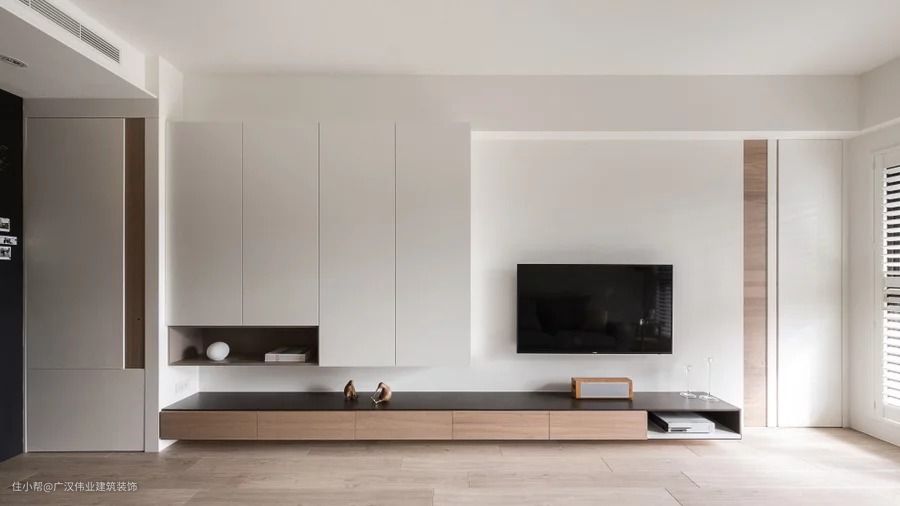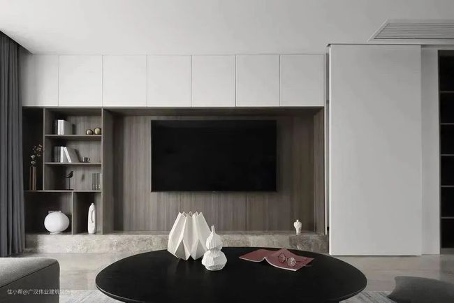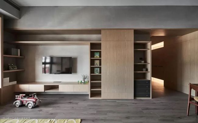 有时候,电视墙除了整体美观之外,还会承担一些其他功能,比如小户型收纳不足,那么电视墙就要承担部分收纳功能。