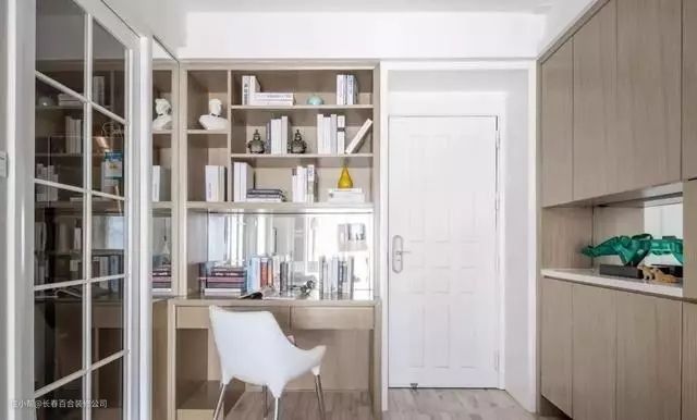 在客厅的另一侧就是阳台改造的书房、次卧,平时作为书房来使用,当有需要的时候就可以变身成为次卧了。
