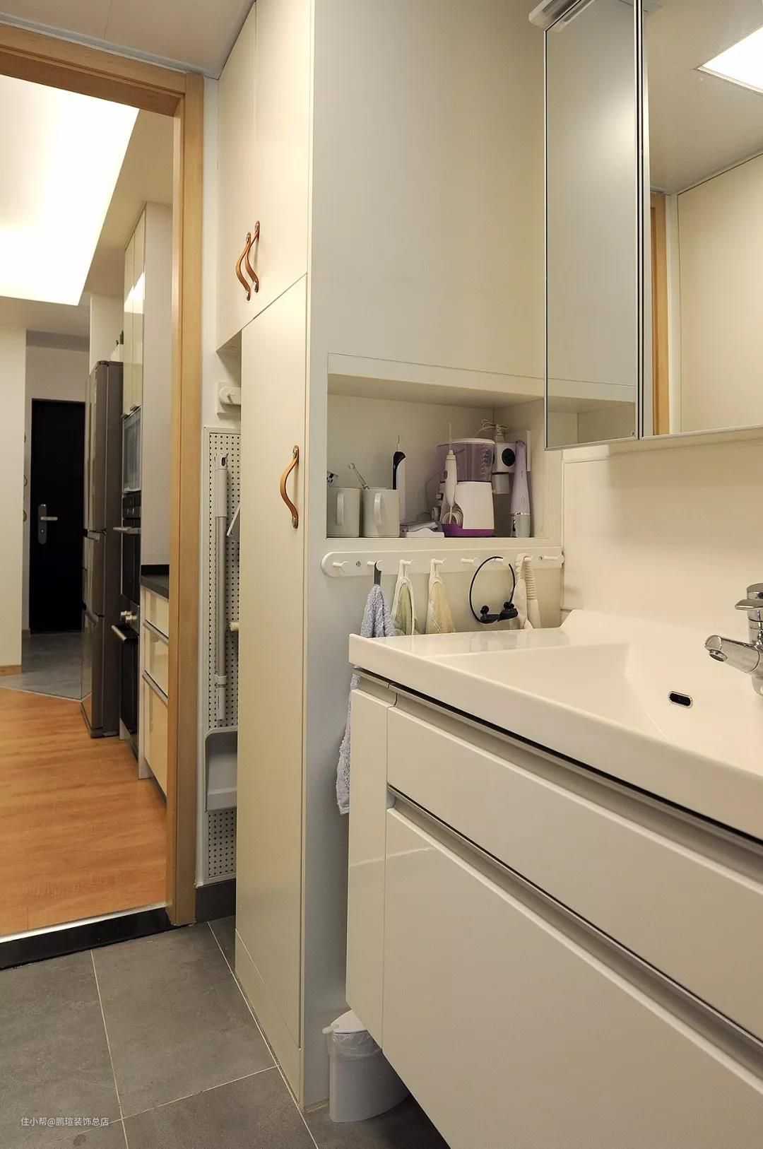 从这里可以看到,浴室柜与入户区处于同一动线上,回到家不用提醒就能自觉清洁双手,全家人养成了良好的卫生习惯。