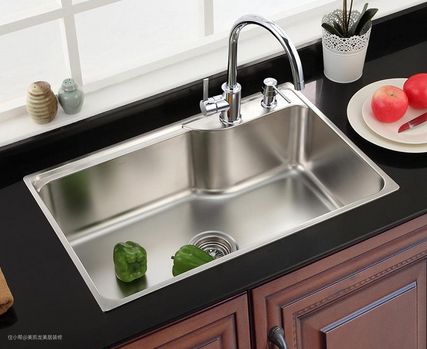 大单槽,尺寸在 850mm 以上,很实用,可以将各种家用锅具放进去清洗。