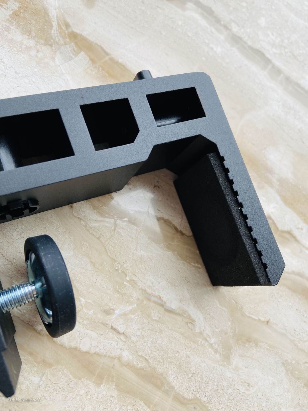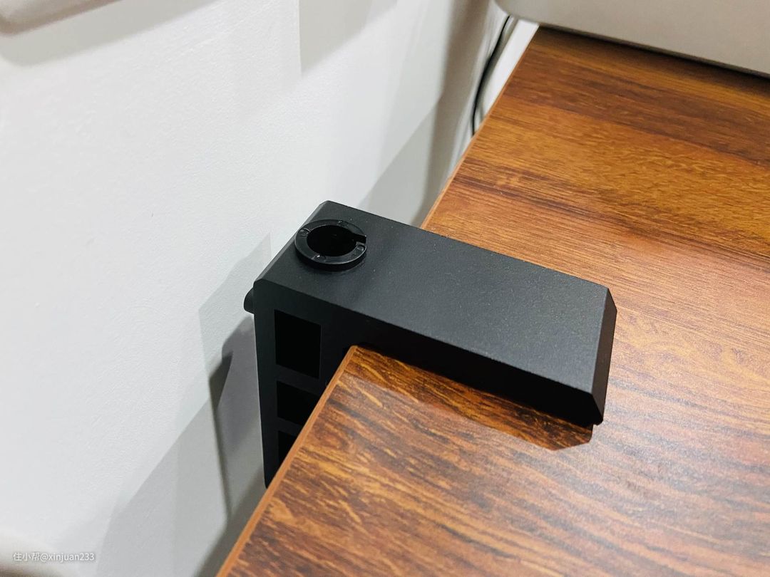 采用桌夹的设计,可以最大化的节省桌面空间,这款铝合金材质大班夹,长度最深9CM,宽度大约在3.5CM左右,对桌面空间的影响几乎可以忽略不计。夹具的宽度为9CM,可以适配大部分的办公桌。比如我的可升降书桌桌面厚度在2CM左右,安装起来十分方便。