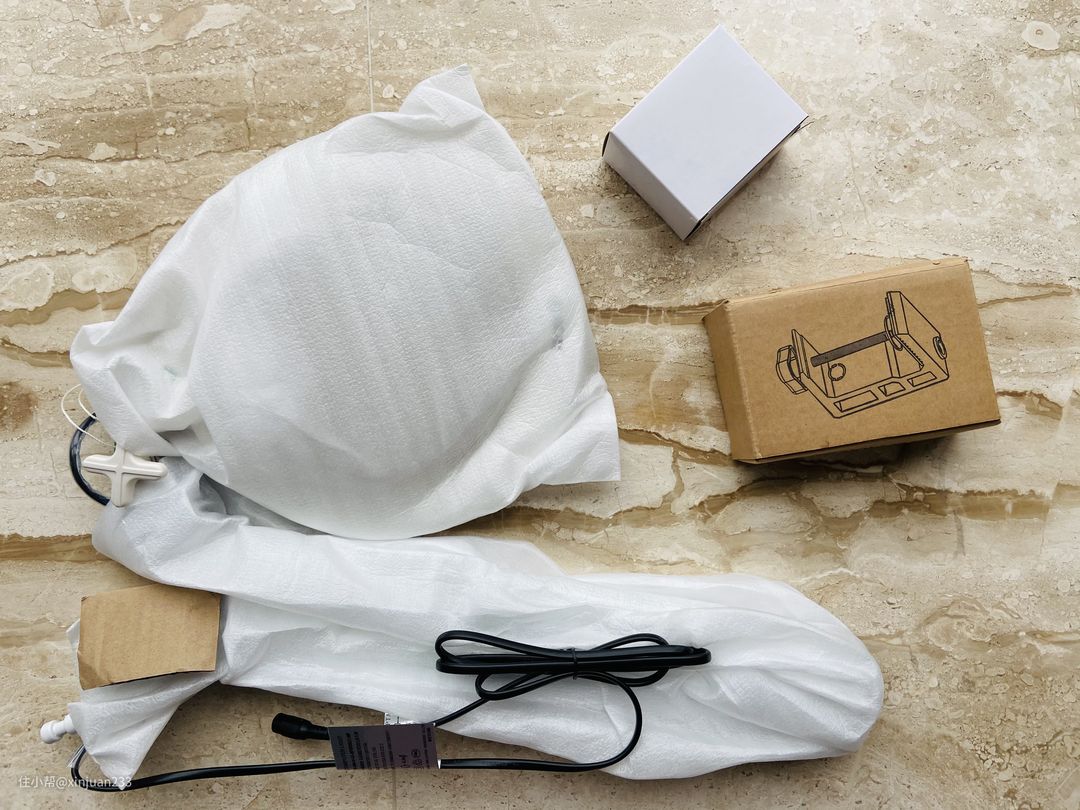 打开包装,可以看到整套产品都整齐的摆放在包装盒内。产品的保护做得不错,主要的部件都采用泡沫纸包裹,避免在运输中损伤。灯具包装盒内部也用硬纸板做了固定,保证运输过程中不会发生位移磕碰。