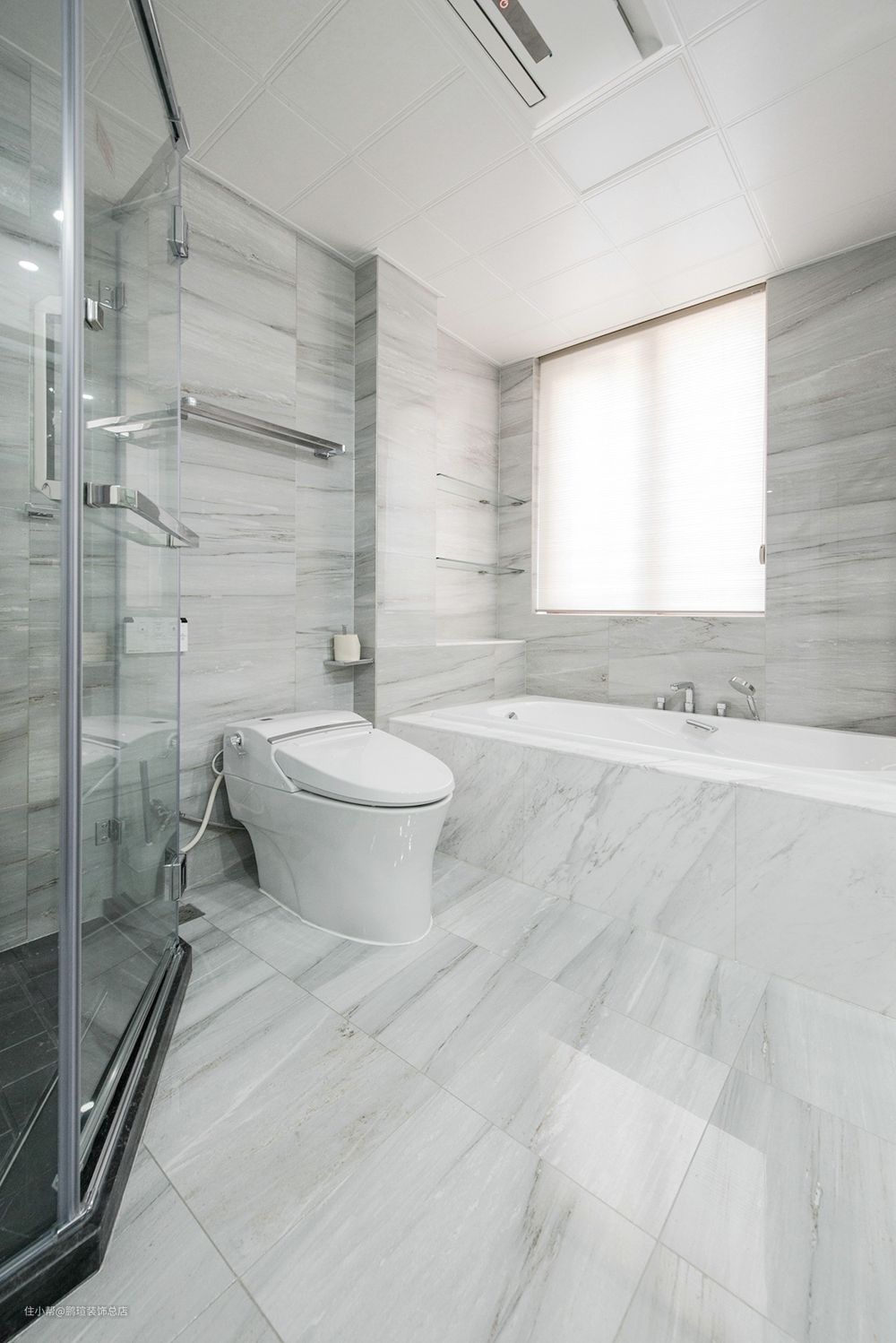 主卫采用灰白色云纹瓷砖全包裹墙面,既整洁又耐脏。