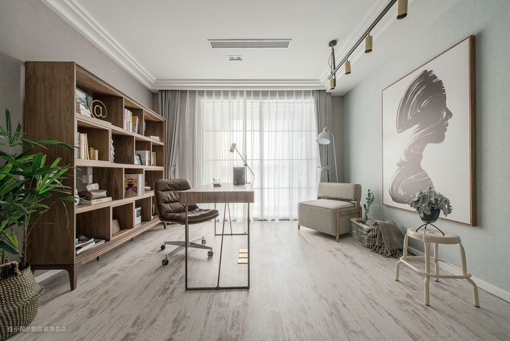 迎合业主的需求,将客卧改为了书房,整体以中性色调为主,自然又宁静;同时既可以满足日常的加班办公需求,也能在此享受独处的个人时光。
