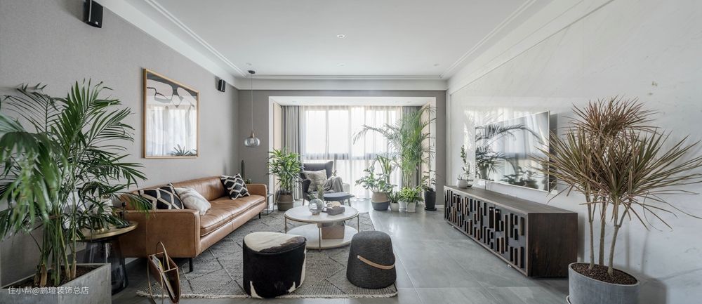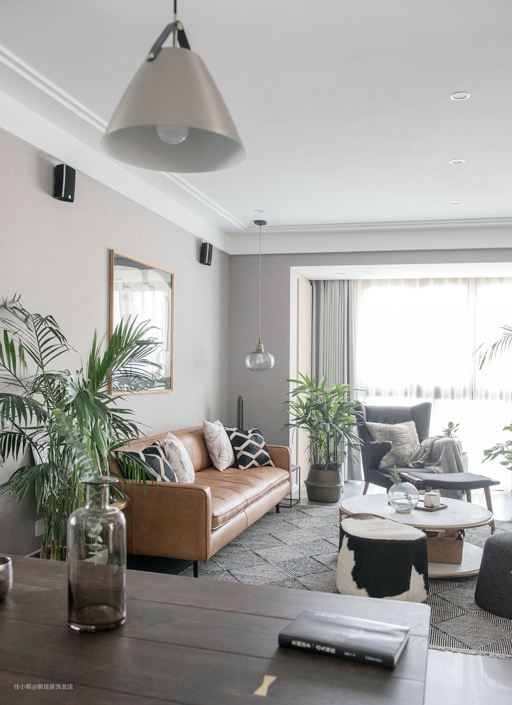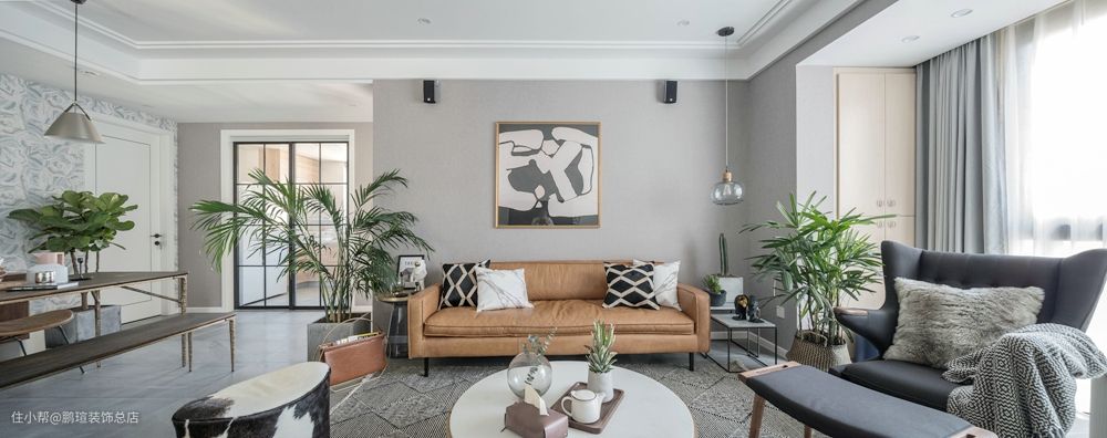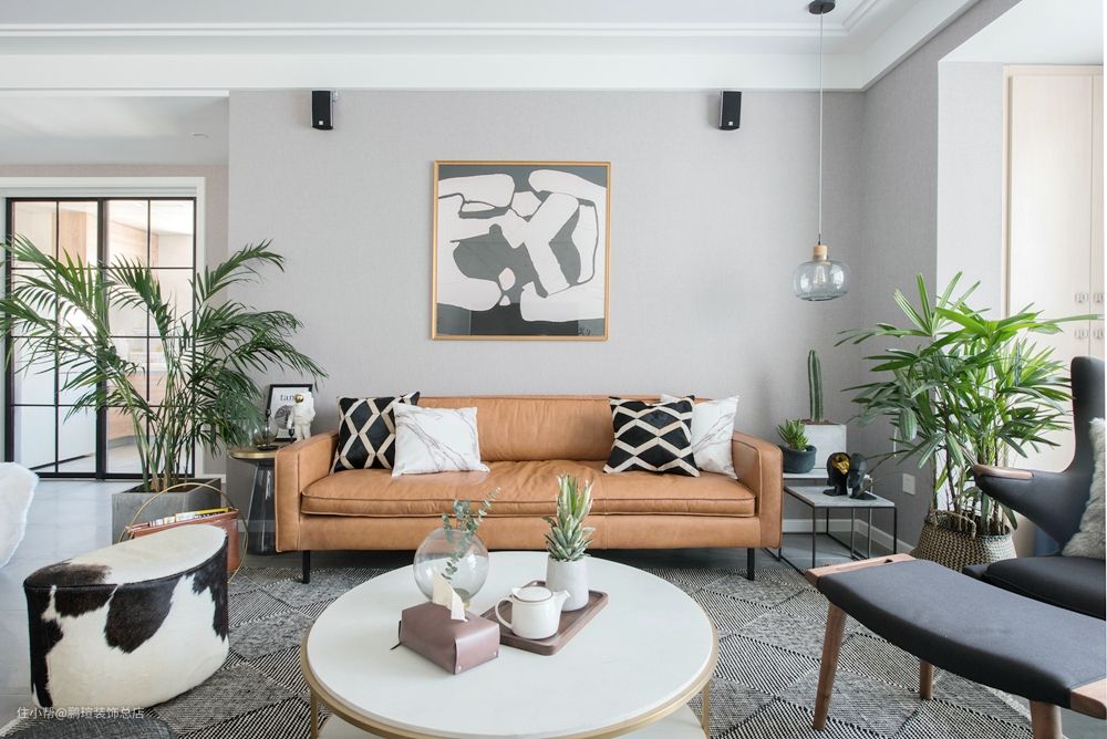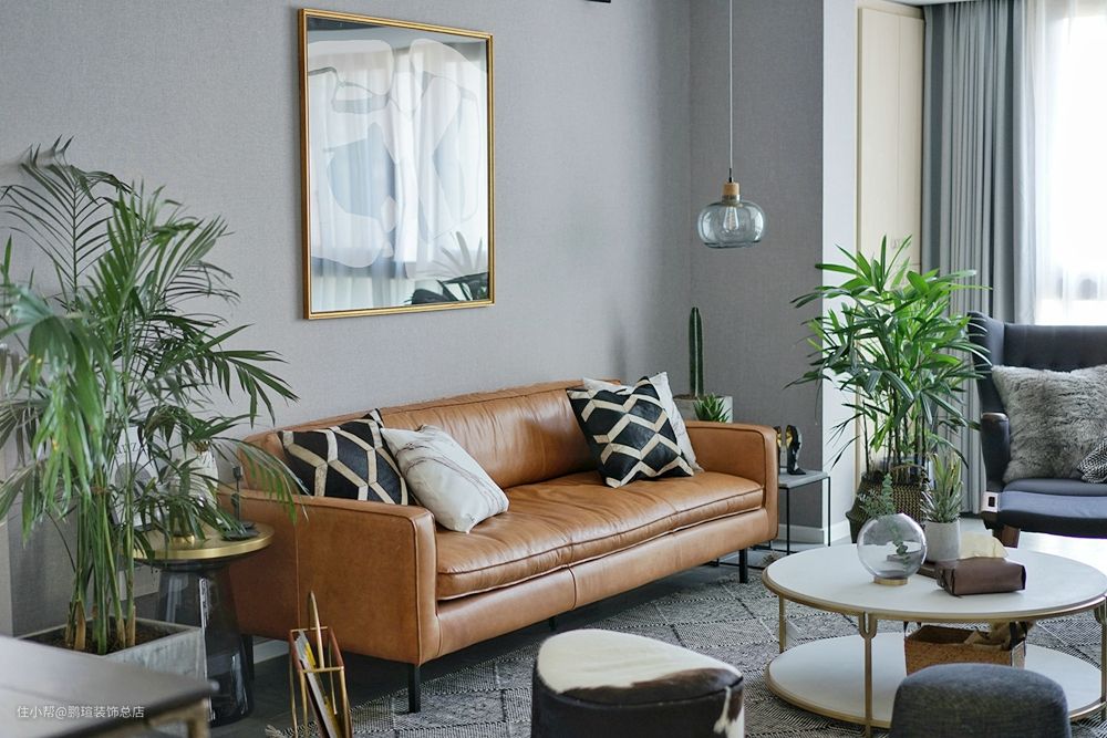 要是想显得充满生活气息,还可以在沙发左右两侧点缀上高大的室内盆栽,一股清新自然的风格便弥漫开来。