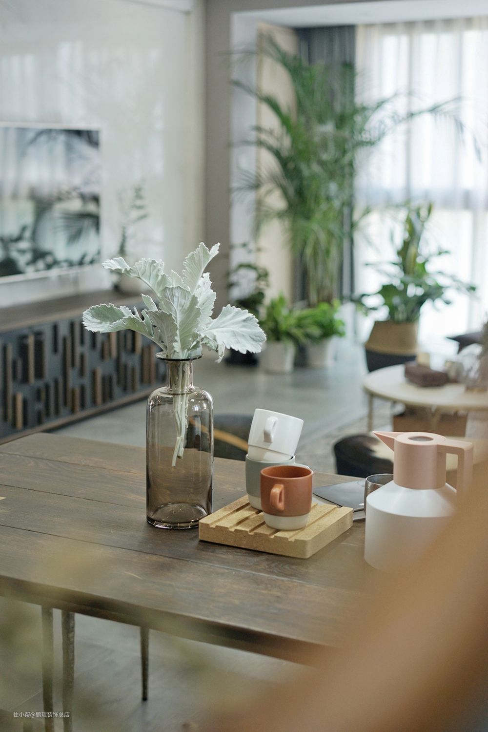 精美的玻璃瓶,色彩各异的茶具,用餐结束后,和家人坐在此处畅聊人生,充满了无限的幸福与温馨。