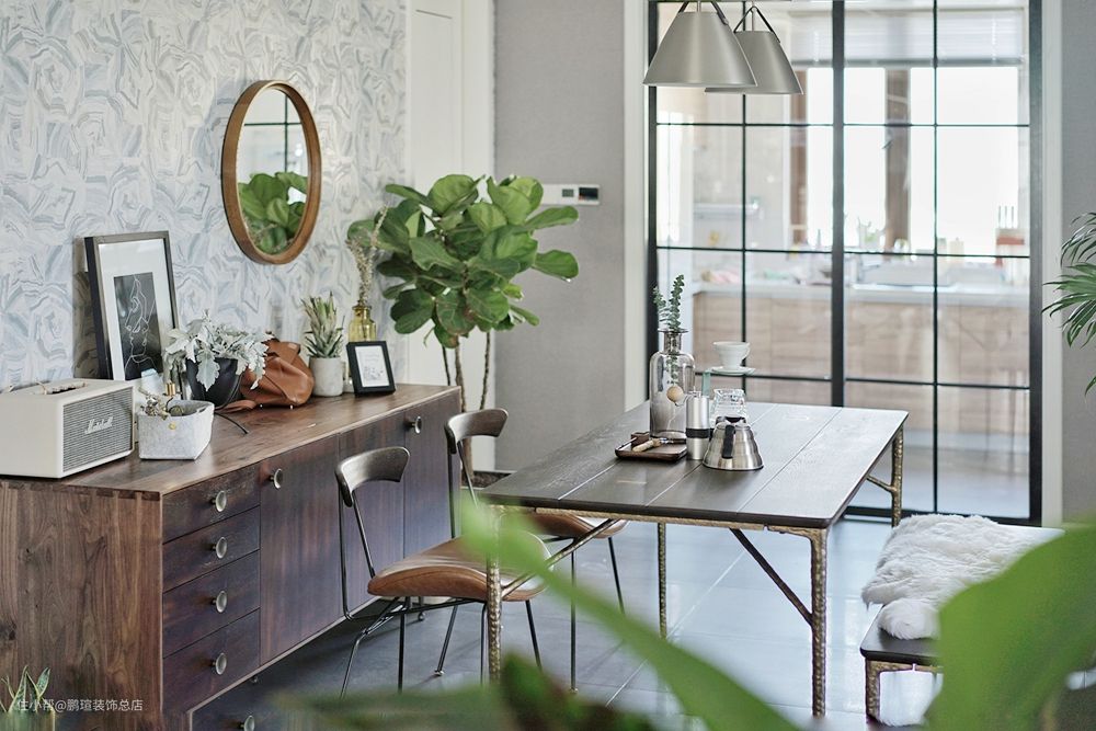 厨房与餐厅用黑边框的玻璃材质玻璃门隔断,充满了硬朗的工业风元素,炫酷又时尚。