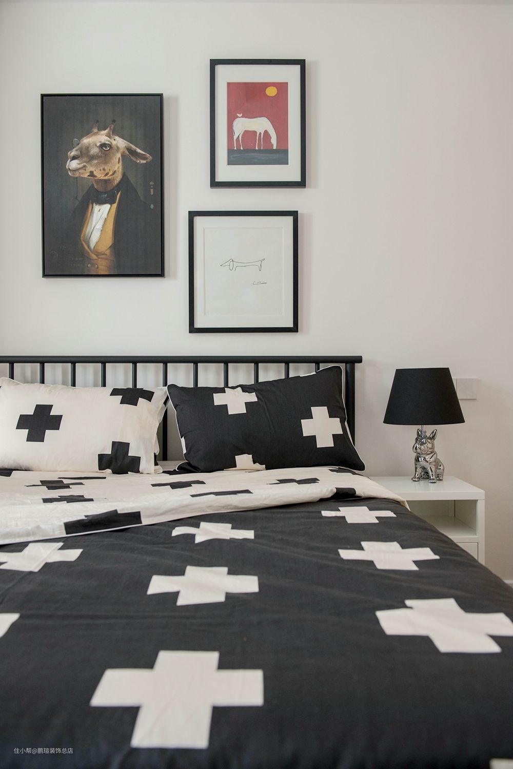 儿童房的布置在细节之处充满了童真,黑白花纹图案的床品,动物造型的床头灯,以及墙面上的可爱装饰画,细节之处尽显设计的独特。