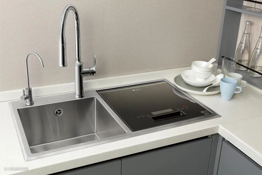 水槽洗碗机一体式设计,不仅可以节省台面空间,洗碗也省心省力。欧铂丽配备的洗碗机具有70℃以上的高温消毒作用,还能清除果蔬农残。