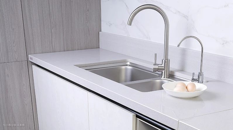 相比台上盆,水槽做成台下盆更好打理,将台面上的水、饭渣、菜叶轻轻一抹就到水盆里,并且承重性更强,美观度也更佳。