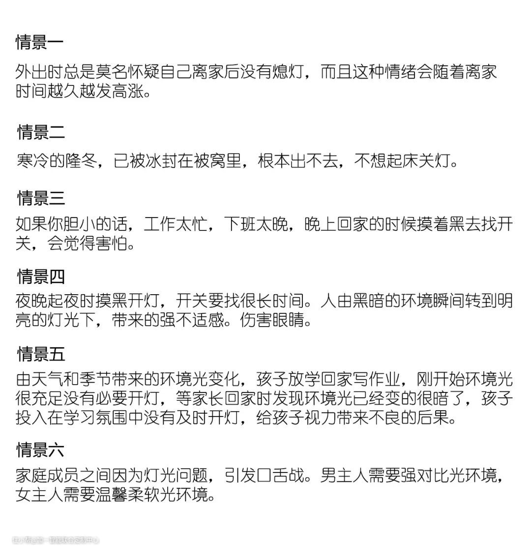 但是想象一下:回到家,明明可以伸手就打开灯光,却还要拿出手机,解锁后才能打开?!晚上要睡觉了,手机落在客厅了。客厅灯光忘关,还要去找手机才能关灯。晚上起夜,需要摸黑找到开关或者手机,才能打开灯光。