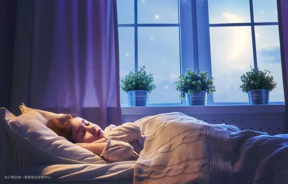 模拟自然光的变化,让室内的照明随着自然光一起变换,搭配智能窗帘随着睡眠模式,创造出符合我们酝酿睡眠所需的舒适光线环境。