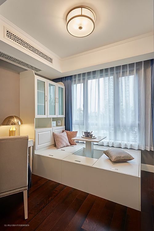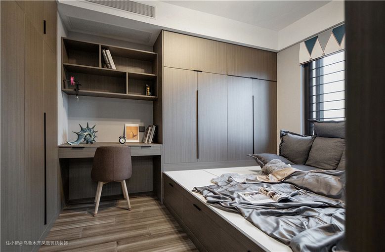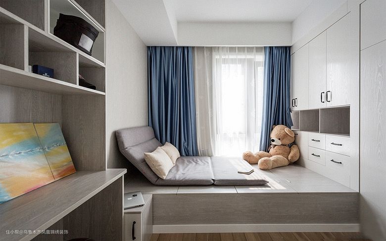 现代的榻榻米设计不仅造型好看,而且功能非常多,既可以当书柜、衣柜还可以当书桌,只需要一个榻榻米就能代替各种家具。