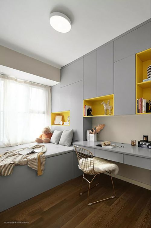 这种设计较多使用在儿童房或是小公寓中,因为户型空间比较紧凑,采用榻榻米床设计,就很有的利用空间面积,将卧室使书房很好的结合在一起,而且这种榻榻米床较多设计在窗户边,既能良好的采光的效果,而且还能透风换气,当看书学习,或是办公疲累之后,抬头就能看到外面的的风景,既能缓解压力,又能欣赏风景,非常不错。此外,书柜设计在一旁,既方便日常拿取,又能提升整体的设计感,在设计上可以多利用灯光或是绿植作为点缀。