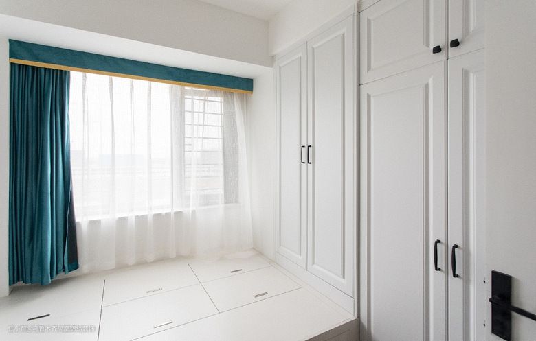 榻榻米床垫下方通常可以做成储物柜,比如置物格、抽屉,可以放些平时不怎么穿的衣物。