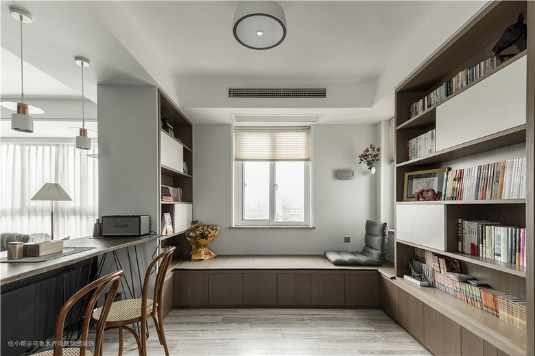 这种搭配技巧很具实用性,榻榻米的两侧设计成衣柜,既有效利用了空间面积,而且能起到很不错的储物效果,不管用来放置衣物或是被子都可以,衣柜旁边的空间可以设计成书架,并且可以采用整体组合柜的设计,这样更有统一感,并且衣柜还可以根据自己的爱好与需求私人订制,再结合上房屋的整体风格,呈现出的效果会更棒。