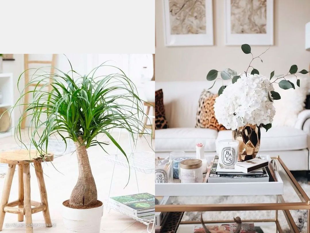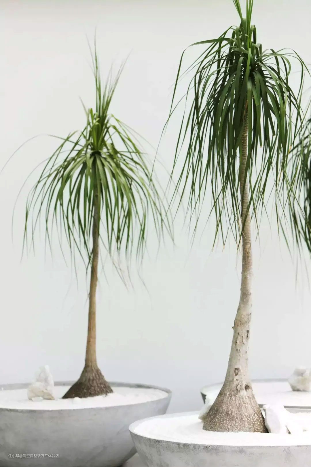 适合风格:北欧、现代简约马尾棕优点:艺术感、观赏性强,释放氧气绿植搭配:马尾辫棕榈+绣球花