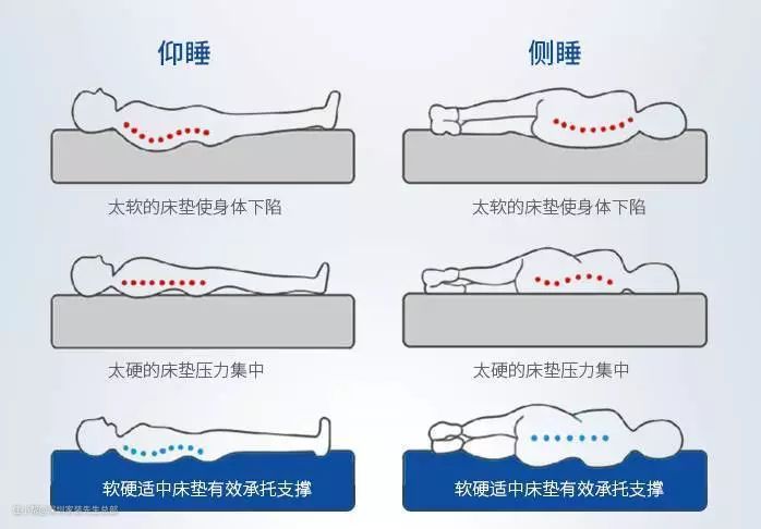 在这个阶段,床垫非常重要,建议使用较硬的床垫,实际上,软和硬是相对的,硬床垫并不代表睡床板。那么我们如何选择一个合适的“硬”床呢?