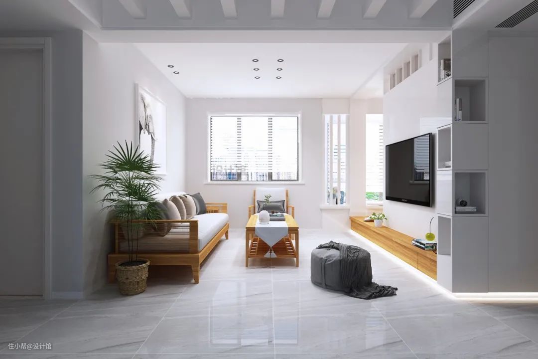 地面与墙面、房门虽然不在同一个面上,但在同一个空间上看,如果平面与立面的颜色搭配不和谐(比如黑色地面+白色房门)的话,整体效果也是会比较别扭了,因此地面与房门的颜色,也是要做好搭配才行。