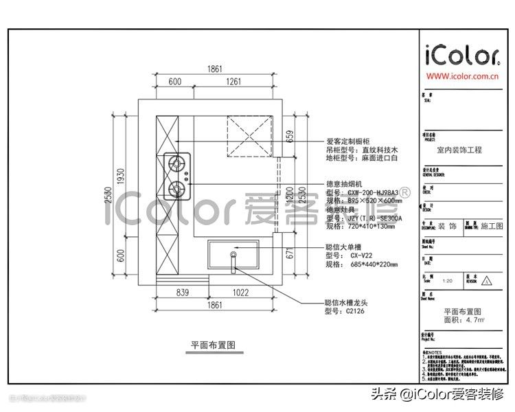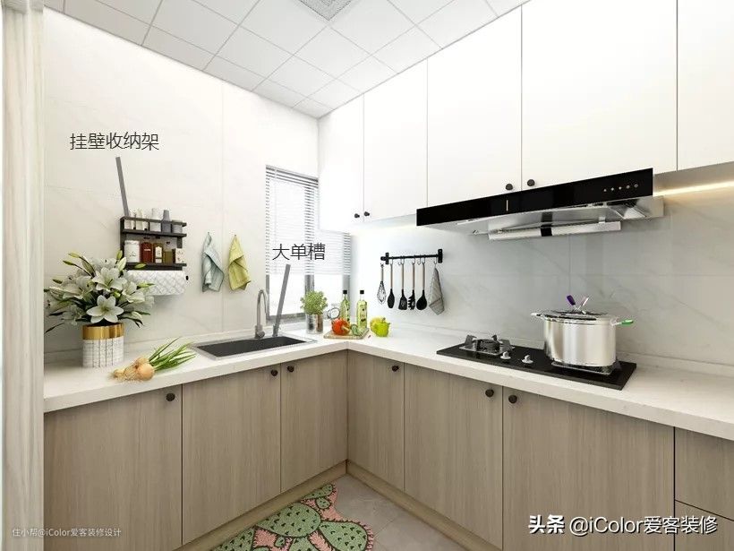 通过现场考察勘测,iColor爱客空间改造专家分析小彭的“厨房间”主要存在以下几点问题: