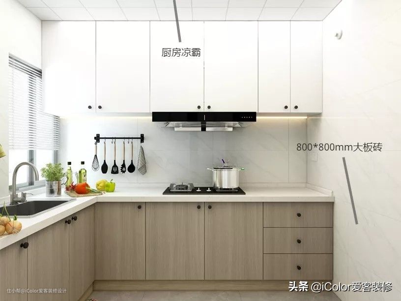 这套厨房间朝北,夏天热冬天冷,爱客在厨房顶部天花板花了点“小心思”——安装上凉霸。小彭终于能告别夏日的“汗流浃背”之苦啦~
