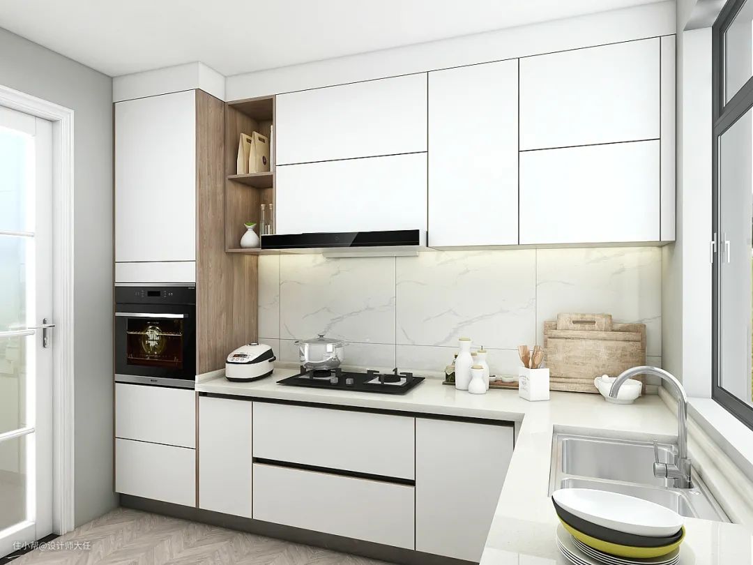 墙壁上贴着能轻松去污的防油贴壁纸,则扫除时较为方便。相关产品在某宝搜索“厨房防油贴 防水耐高温”即可找到!