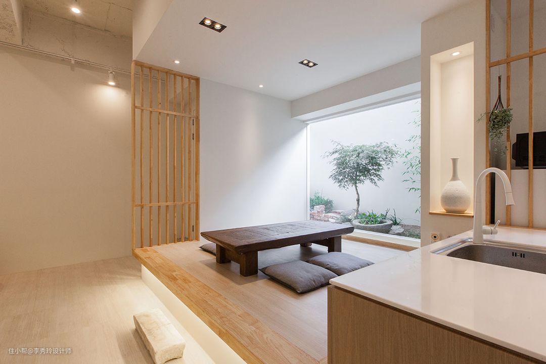 如果觉得上面所说的榻榻米不适合自己家,推荐小伙伴设计简易榻榻米,一张垫子+一张坐垫+一个小茶几,搞定。