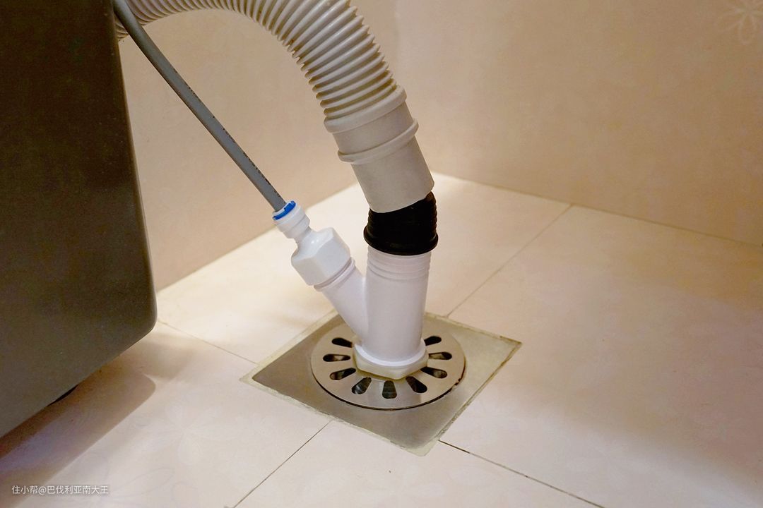 这个是下水三通,粗管连接大洗衣机,细灰管连接内裤洗衣机,干净利索,丝毫不影响美观。