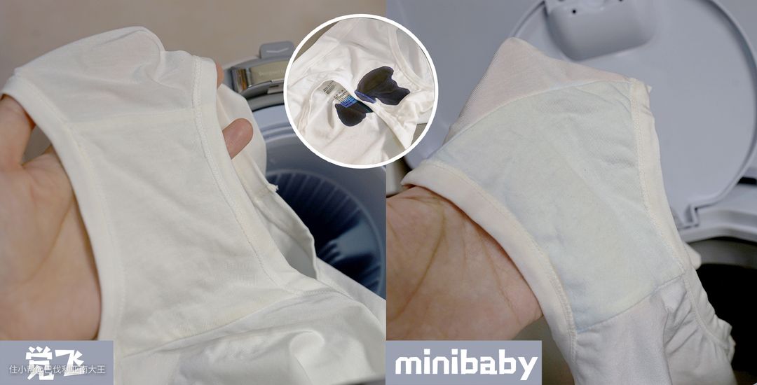 再来看minibaby的洗涤手法,它是传统波轮洗衣机,靠充沛的水量和极高的流速才能洗净,这就需要足够的容积,才有足够的清洁力。但这种小型洗衣机本身容积就很小,对小件衣物清洁力自然就差一些。